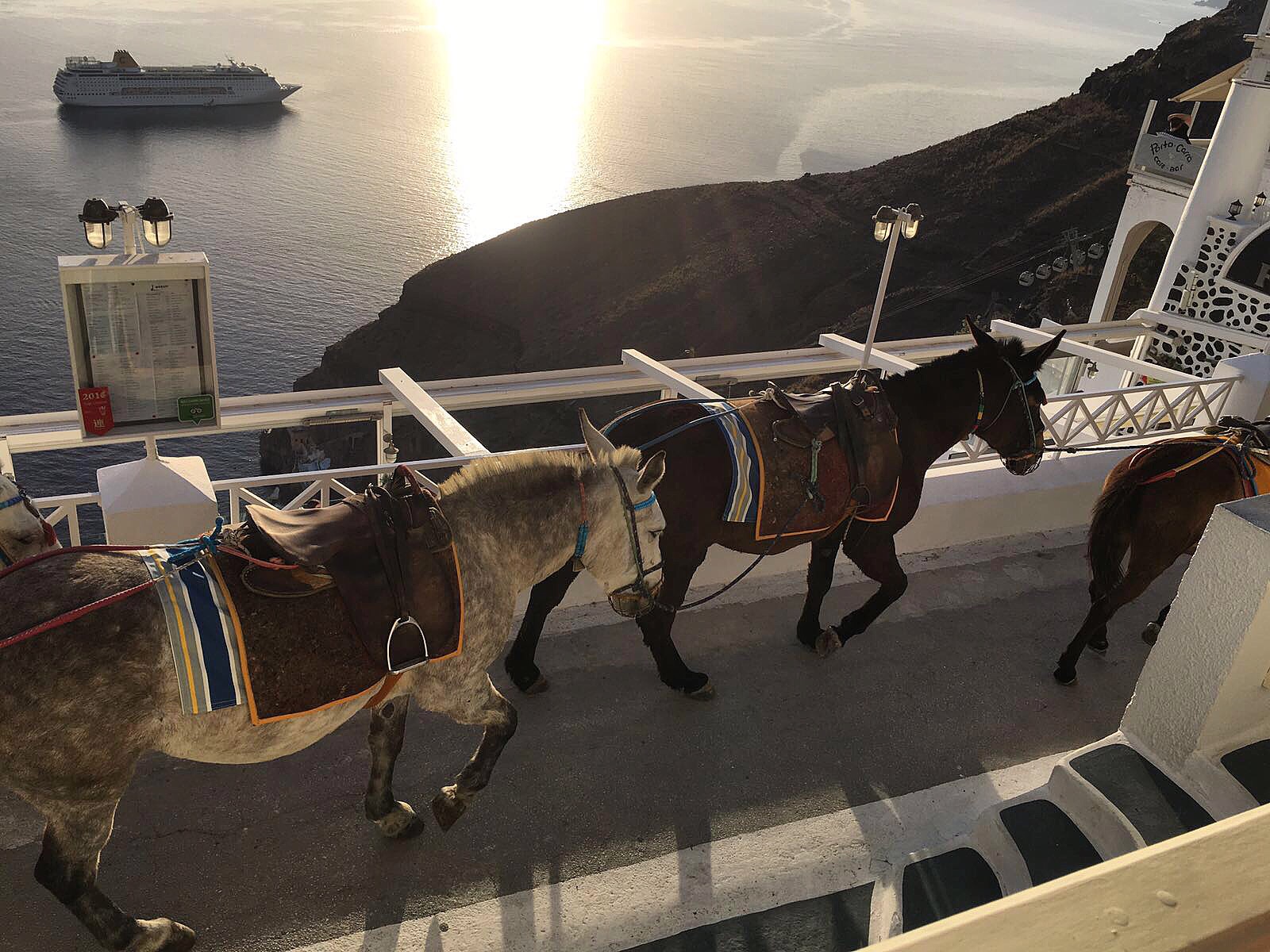 Fira is such a picturesque town with its cobbled streets and jaw dropping views of the volcano. There are lots of places to eat and the town is really easy to navigate as it’s pretty small! Once you get on the cliffside, there is a picture postcard view literally every where you look – warning though, beware of the donkey dung! There are lots of donkeys that transport people up and down the cliffs (I felt so bad for these poor animals!).
