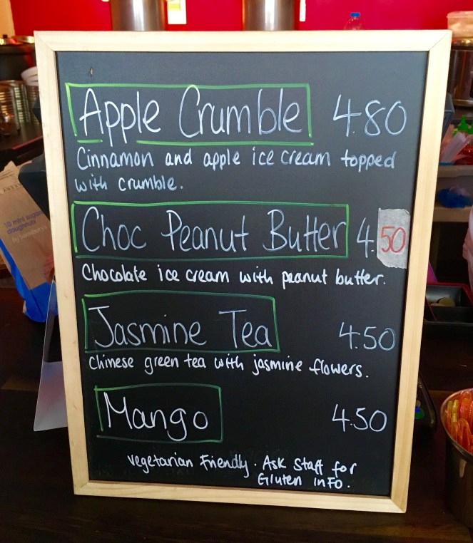 Each week, Yolkin comes up with creative and unusual flavours that have food bloggers queuing around the corner from the moment the store opens. This week, we were presented with 4 flavours: apple crumble, chocolate peanut butter, jasmine tea and mango.