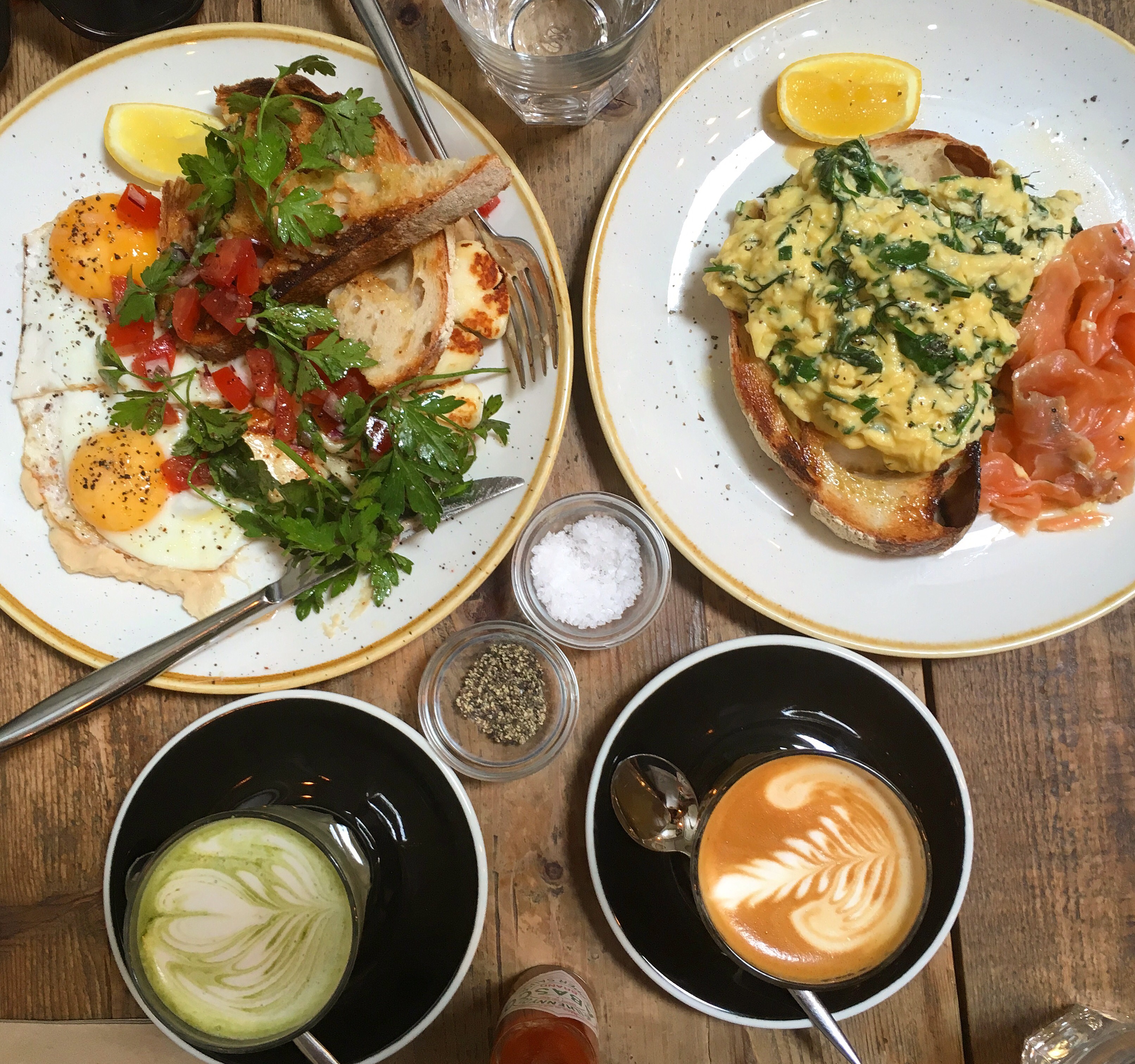 Order: Ozdemir Pasha (£10.90) – Grilled halloumi, fried eggs, butter bean hummus, sumac, fresh tomato, onion and parsley salad with grilled sourdough