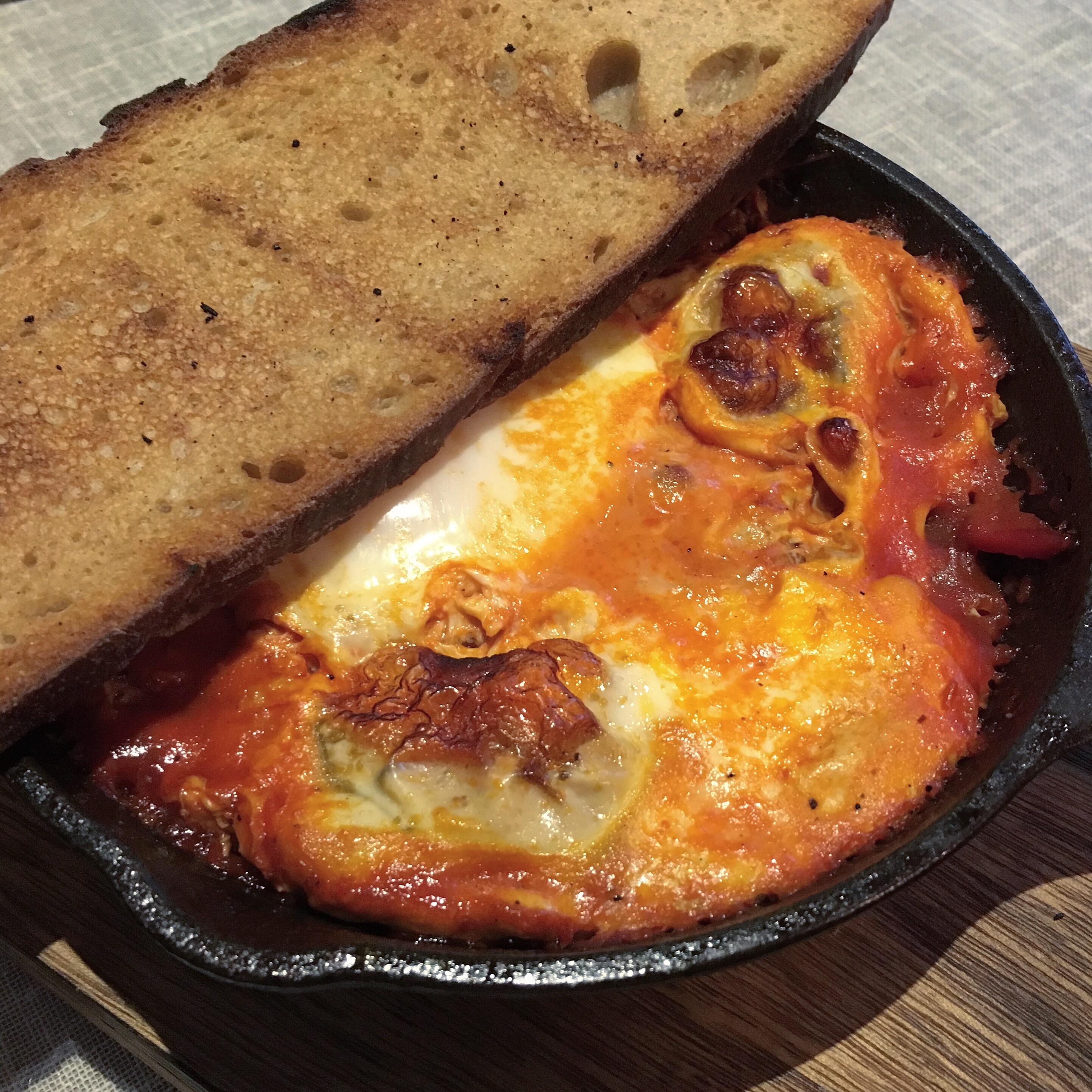 Order: Shakshuka (£9) – eggs, toasted sourdough.