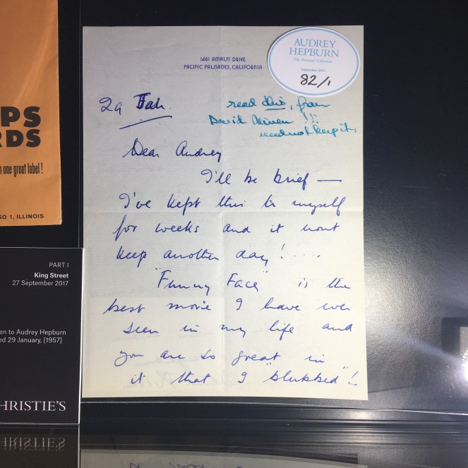 The collection was incredible, showcasing the highlights of Audrey’s Hepburn’s life and career. This was also the first time these personal items had been offered for sale so some of them had never been seen before. Reading telegrams from people like Fred Astaire to Audrey Hepburn gave a snapshot in to the life of a movie legend.