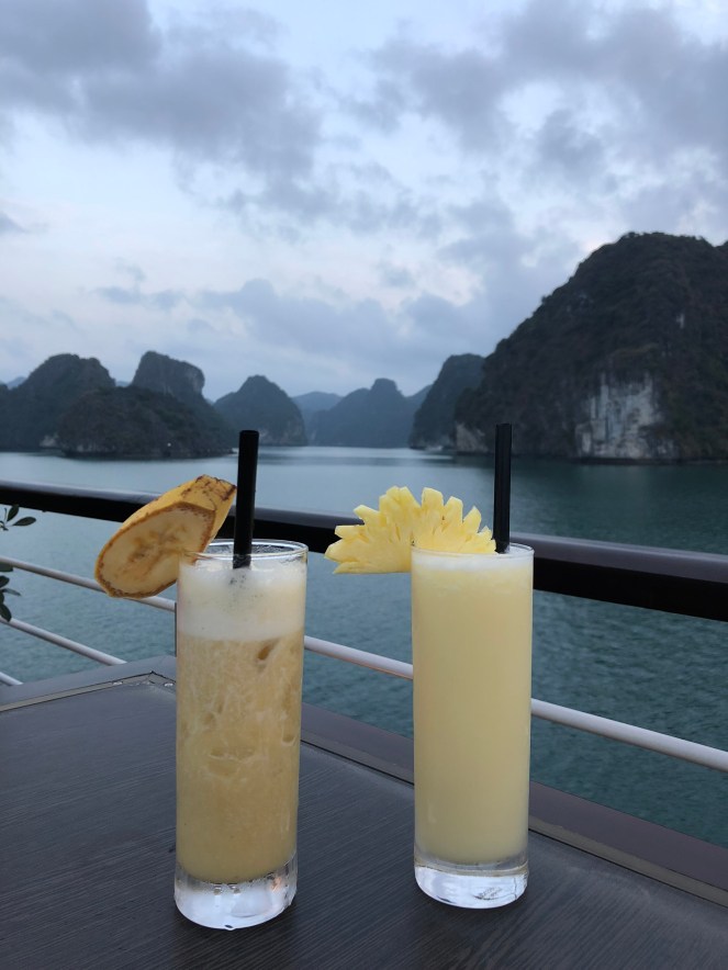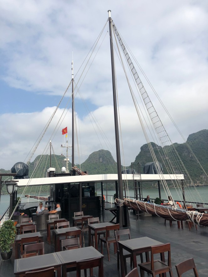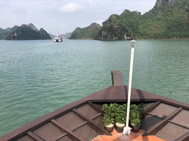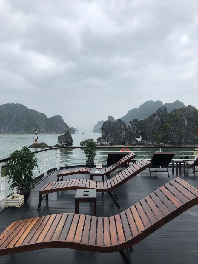 Our cruise was on the Azalea – this ticked all the boxes for me. Not only were the staff friendly and professional, all activities were included in the price (including an excursion to Trung Trang cave on Cat Ba Island), the food was exceptional and the cabins were spacious and beautiful with a private balcony. There was also a spa onboard (extra surcharge) if you wanted a massage or anything. I would highly recommend this company, especially if you’re a little bit older (late 20s/early 30s) and you’re looking for a more relaxed experience rather than a party boat. Another bonus of Azalea was that it went to La Han Bay so we got to experience a slightly less busy area (although I must say, it was still pretty busy when we docked for the night!). I also considered Pelican, Indochina Sails and Bhaya so do check them out too.