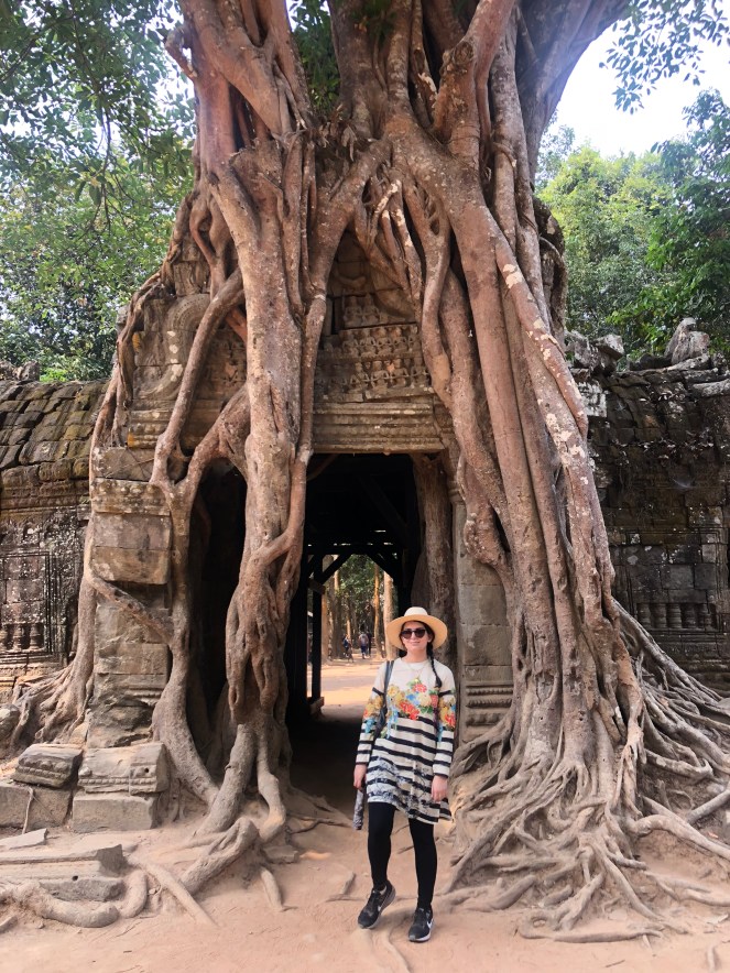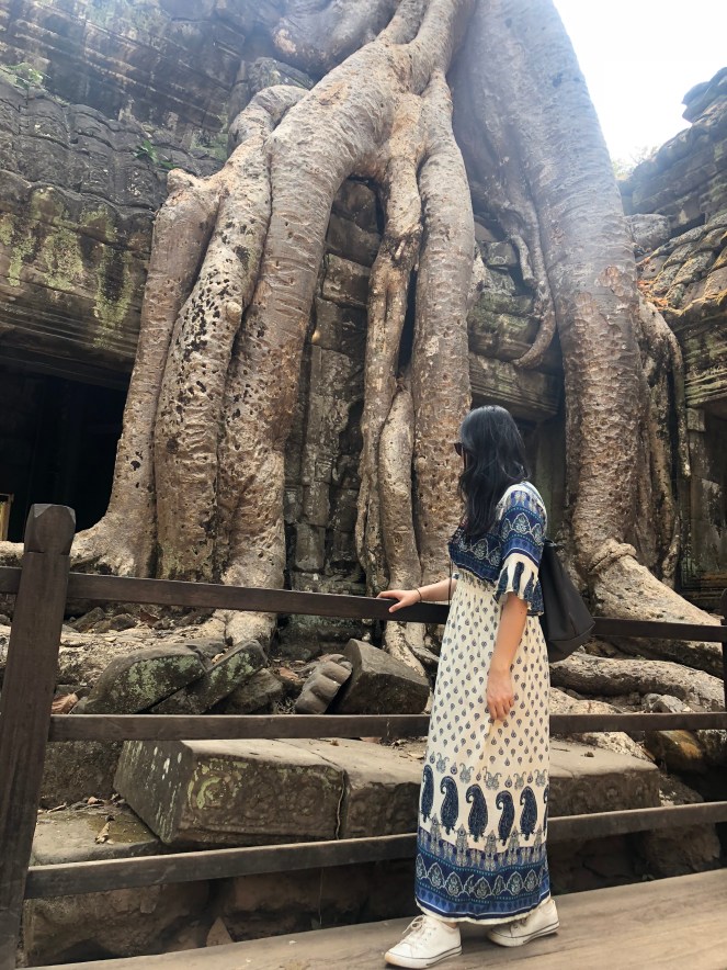 This temple needs no introduction as it’s an iconic monument in Cambodia and across the world. Walking towards the temple for the first time was an amazing experience, with the sun rising behind and creating a magical hue over the buildings.Angkor Wat is the largest religious structure in the world. Surrounded by a moat, this temple has been in continuous use since it was built, unlike many of the other Angkor temples, and is therefore in pretty good shape.I would recommend coming here for sunrise if you can (the tuktuk drive to get there in the pitch-black is an adventure in itself lol). To actually be able to see the sun rise behind the temple, you’ll need to be on the left side of the field facing the temple.